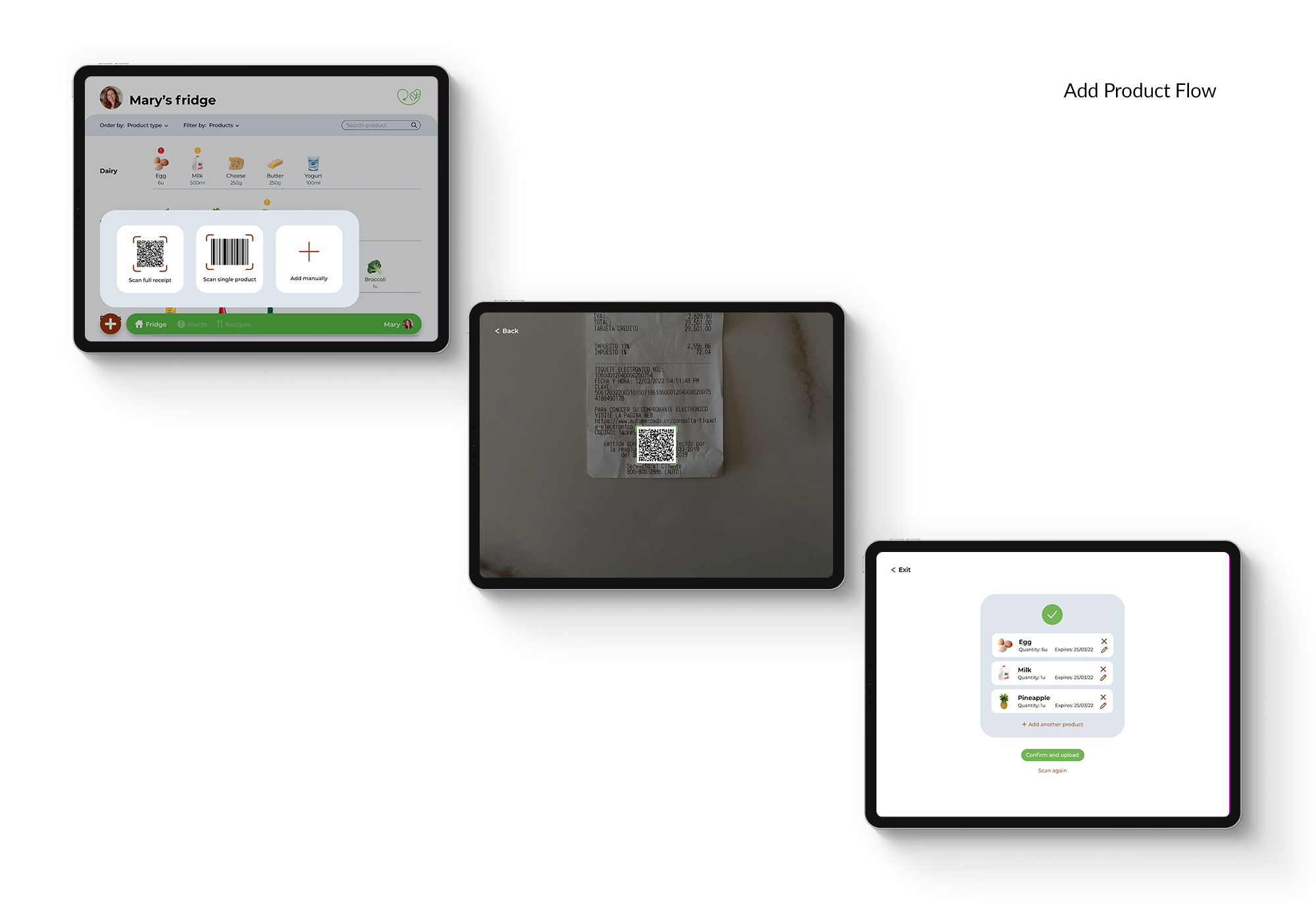 Sos Verde is a digital kitchen device that lets users keep an updated inventory of their perishable foods, with the purpose of reducing home food waste.